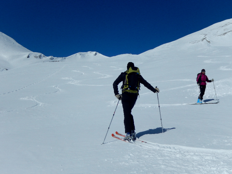 Pri novi koči smo hitro obrnili in si poiskali malo zavetja pri stari koči, na južni strani prelaza. Potem je sledil resnično uživaški spust – veliko bolje kot smo pričakovali med vzponom. Edino po cesti je že malo cukalo, saj so visoke temperature naredile svoje.