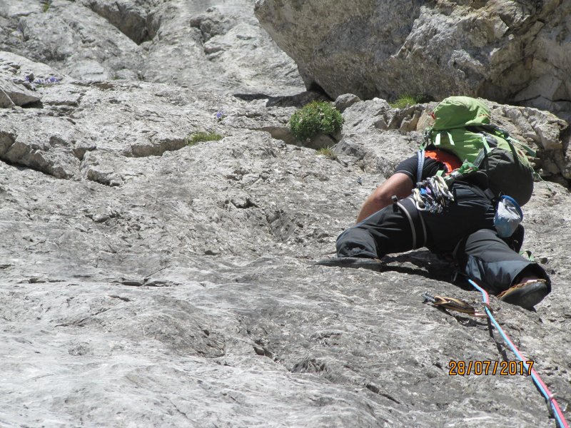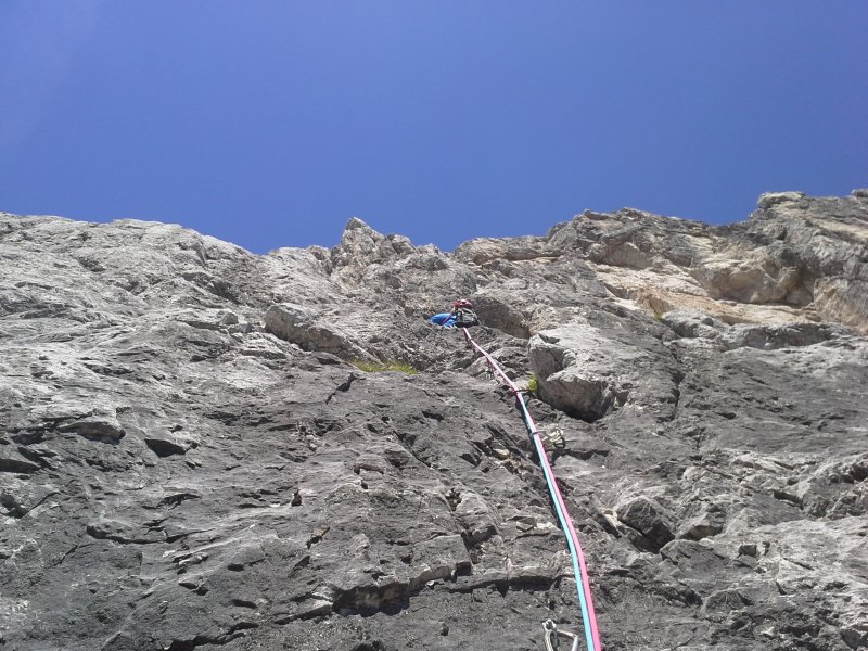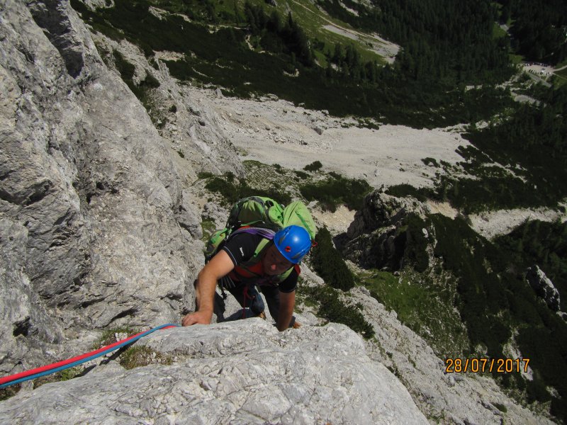 V četrtek sem z Matejem in Gregom iz GRS Kranjska Gora splezal to lepo smerco. V petek pa smo se v navezih Metod in Matej ter Božo in jaz zopet odpravili v NŠG. Metod in Matej sta se odpravila v smer Stoletje, Božo in jaz pa v sosednjo Juševo smer. Smer vstopi prvi cug po 20 m isto kot Stoletje nato pa Juševa zavije desno na raz in po 15 metrih plezanja po razu zavije nazaj levo v kamin. Prvo varovališče je skupno. Stoletje nato zavije levo v plato, Juševa pa gre direktno navzgor po lepi platki V+ levo od zajedice. Tretji cug gre skozi kratek kaminček 20 m na stojišče, kjer je rušje vidno iz doline. Sledi ključni raztežaj iz poličke direktno navzgor 10 m VI, datajl smeri. Nato pa sledi levo po poči mimo stolpiča na naslednje stojišče. Peti raztežaj gre po zajedi IV do naslednjega stojišča. Sledi še zadnji raztežaj po podrtem svetu NŠG – ja do izrazitega kaminčka – zajedice, ki te pripelje do zadnjega varovališča. Tam sva se z Božom razvezala in se po stezici odpravila na greben. Smer izstopi 50 m pod vrhom Šitne glave. Smer mi je bil čudovita, skala je na težjih mestih odlična, smer je tudi dobro opremljena s svedrovci in tudi kakšen klin se najde, pa tud kakšen frend pride prav. Sledil je sestop na Vršič in okrepčilo v Tonkini koči.