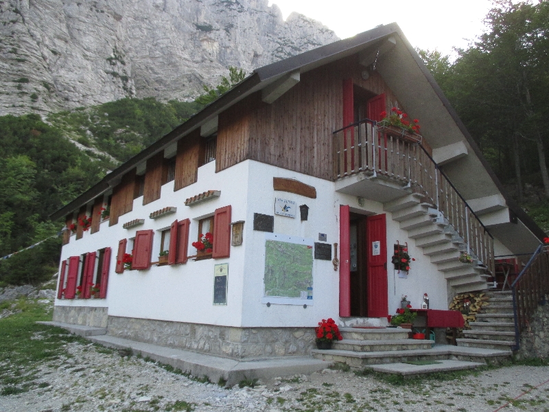 V petek, 17. avgusta popoldan sva se s pretežkima nahrbtnikoma privlekla od parkirišča do planinske koče pravljičnega videza Rifugio Grauzaria. Pravzaprav je pravljična tudi njena notranjost. Mirno lahko zatrdiva, da bolj urejene in čiste planinske koče še nisva zasledila. Noto celoti dodata prijazna skrbnika in njuna psička Rukola. Cene so popolnoma primerljive z našimi; spanje 13€, hrana na jedilniku med 7 in 13€, sendvič 3,50€, pivo 3€.