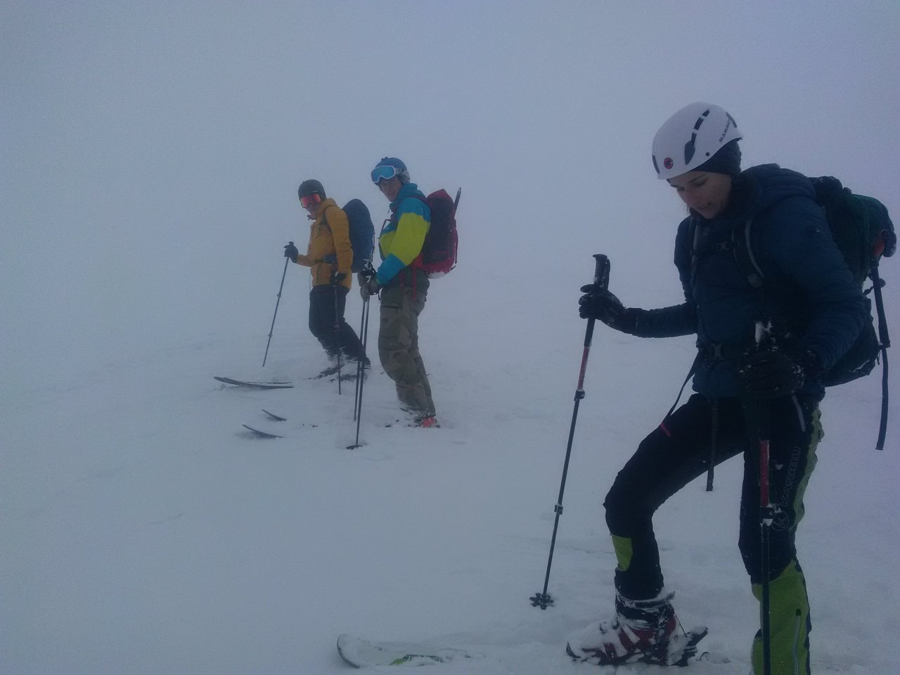 Vreme za vikend je bilo pestro, še bolj vremenska napoved. Kar težko je bilo določiti kaj početi in kje. Aladin je obljubljal še nekaj jasnine v soboto zjutraj na skrajnem SZ koncu naše domovine. Kljub temu je zjutraj v Planici rahlo rosilo in bilo zelo toplo. Z rahlo nejevero smo se vseeno odpravili proti Kotovem sedlu. Vendar je vreme kar držalo in tudi prerez snežne odeje, ki smo ga naredili nekje sredi vzpona ter nižje temperature tam nad 1500 metri, so pripomogli, da smo nadaljevali. V relativno dobrem vremenu smo dosegli Kotovo sedlo, potem nas je zagrnila megla od palčka Smuka. Na srečo je Tin dobro nabrusil robnike in smo jo rezali, lepo počasi v gosjem redu…do pod ozebnika. Od tam dalje pa veselica po nekaj cm novozapadlega na trdi podlagi. Nižje pršiča seveda ni bilo več in zaradi toplote niti ne skorje. Po smučljivem južnjaku smo se pripeljali do koče v Tamarju. Uživali v skoraj popolni samoti (štirje Korošci s SG so jo primahali za nami po špuri, ki jo je vseskozi vlekel Tin-se priporočamo za še kdaj) in dodobra izkoristili bolj vremensko kiselkast dan: Branka, Tina, Tin, Nal, Benjamin in Luka, ki je zaradi žuljev sicer predčasno zapustil skupinico…
