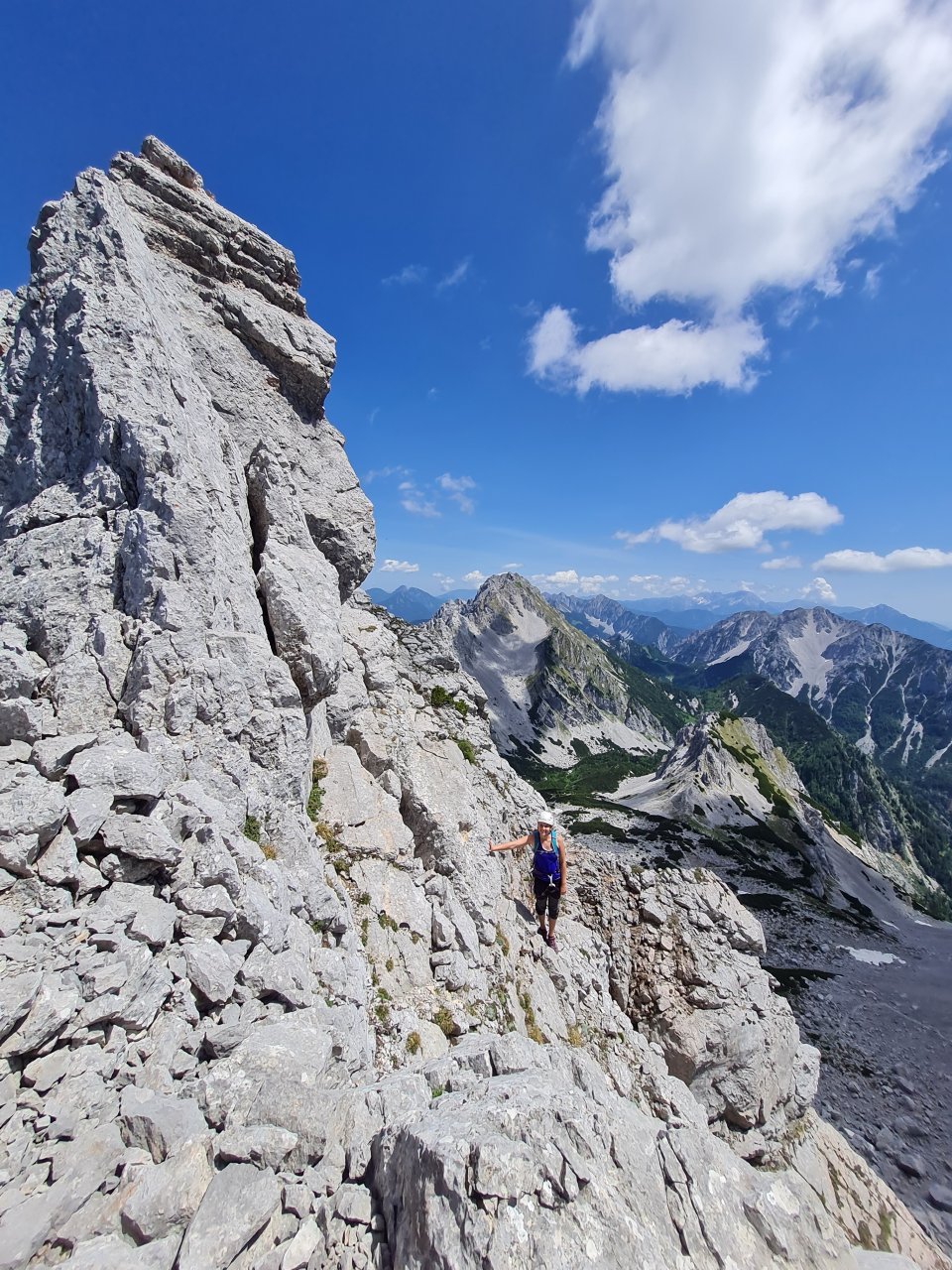 Že dve leti nazaj se nama je z Gregom porodila ideja o prečenju tega grebena. No danes se nama je uspelo časovno in vremensko uskladiti in sva šla. Štartala sva pri Tinčkovi koči mimo Doma pri izviru Završnice proti sedlu Šija. Tam se odločiva za zgornjo pot proti Stolu. Sledi nekaj višincev spusta nato pa skozi rušje spet na pot in na sedlo Svačica, kjer sva vstopila na greben. Na poplezavanju po obeh Jelenčkih te spremljajo svedrovci na izpostavljenih delih in pa nekaj starih klinov. Če si prvič v teh koncih, verjeno ne izbereš najlažje varjante, ampak se vse da ‘če greš za nosom’ ali pa če veš, da čez prepad sigurno ne boš šel ;). Štrik za kakšen del definitivno ne škodi, saj psiha dela svoje, skala pa tudi ni ravno dolomiška. Po Jelenčnih se kar nekaj metrov spet spustiš in nato nadaljuješ do Celovške špice na katero s te strani ni umetnost priti, sestop pa je malo bolj siten. Kakšen možic za orientacijo več bi prav prišel. Sledil je še Krkotnik nato pa sva se zaradi Gregovih popoldanskih GRS obveznostih odločila, da za Stol na žalost zmanjka časa. No vroče je bilo za pop**** pa vode tudi nisem imela več veliko, tako da mi je bila ta ideja zelo všeč. Sestopila sva melišču do markirane poti na Stol, nato po spodnji poti proti sedlu Šija in čez Zagon nazaj do avta.