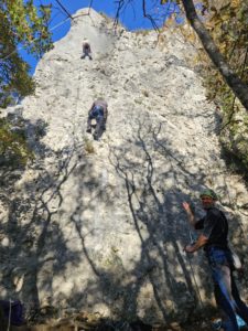 Vodja je bil Matic Košir, ki je skupaj z družino poskrbel da je bilo vzdušje res domače in sproščeno. Malo bolj izkušeni so že plezali v vodstvu, ostali pa na top. Skala je pa itak lepa in vse drži. Prišli smo: Matic, Neli z otrokoma, Nina pa njen Luka, Luka N. , Tina , Luka B. , Mark, Gašper, Jože in Thomas.