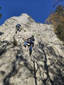 S tečajniki smo šli prvič v letošnji sezoni plezat v skalo. Izbrali smo res lep sončen dan v Črnem Kalu.