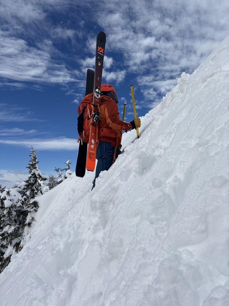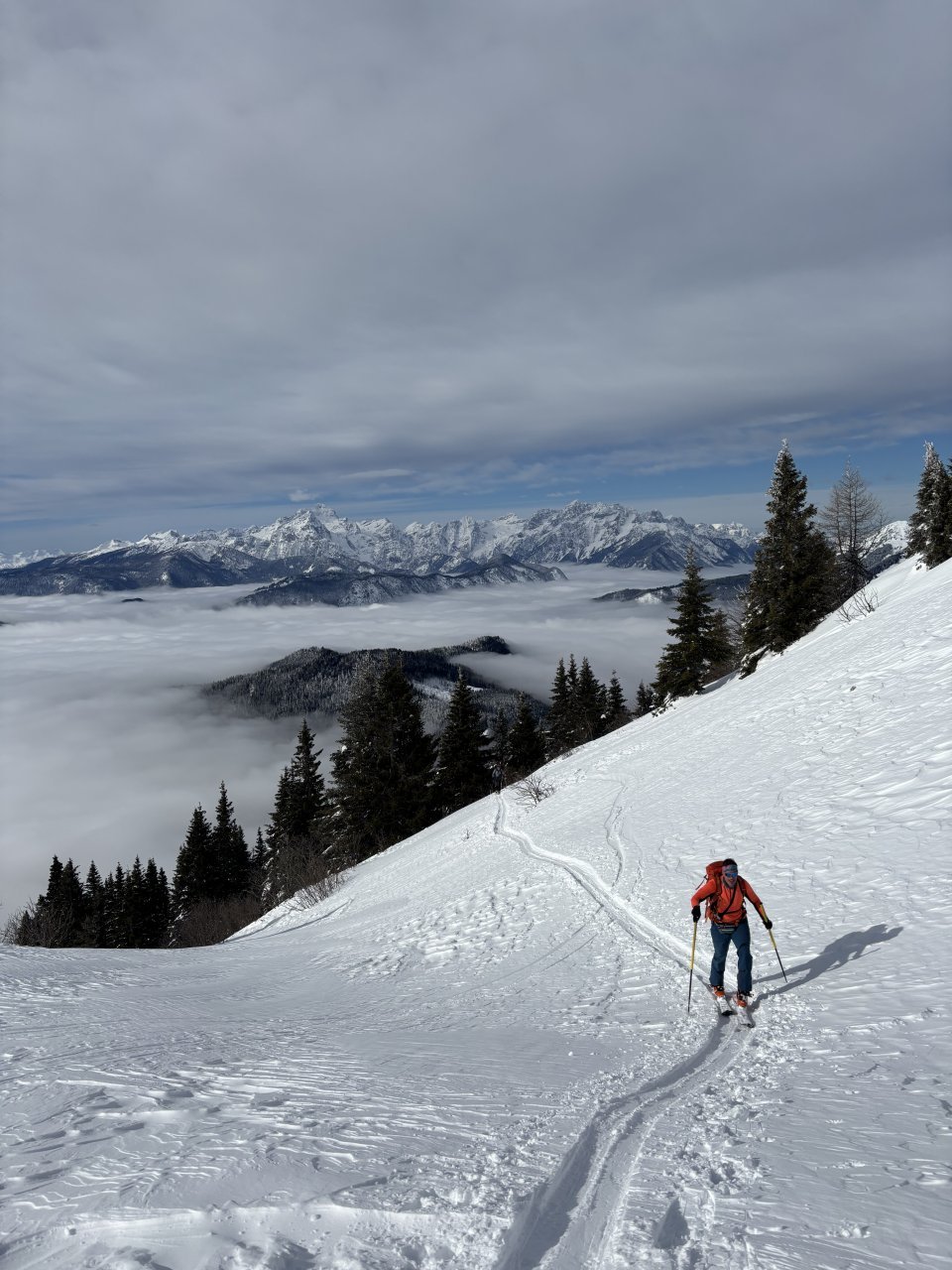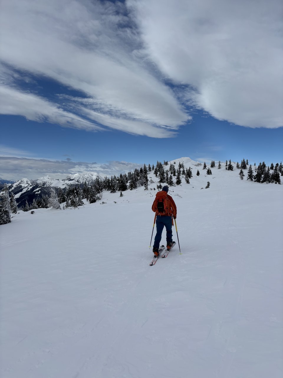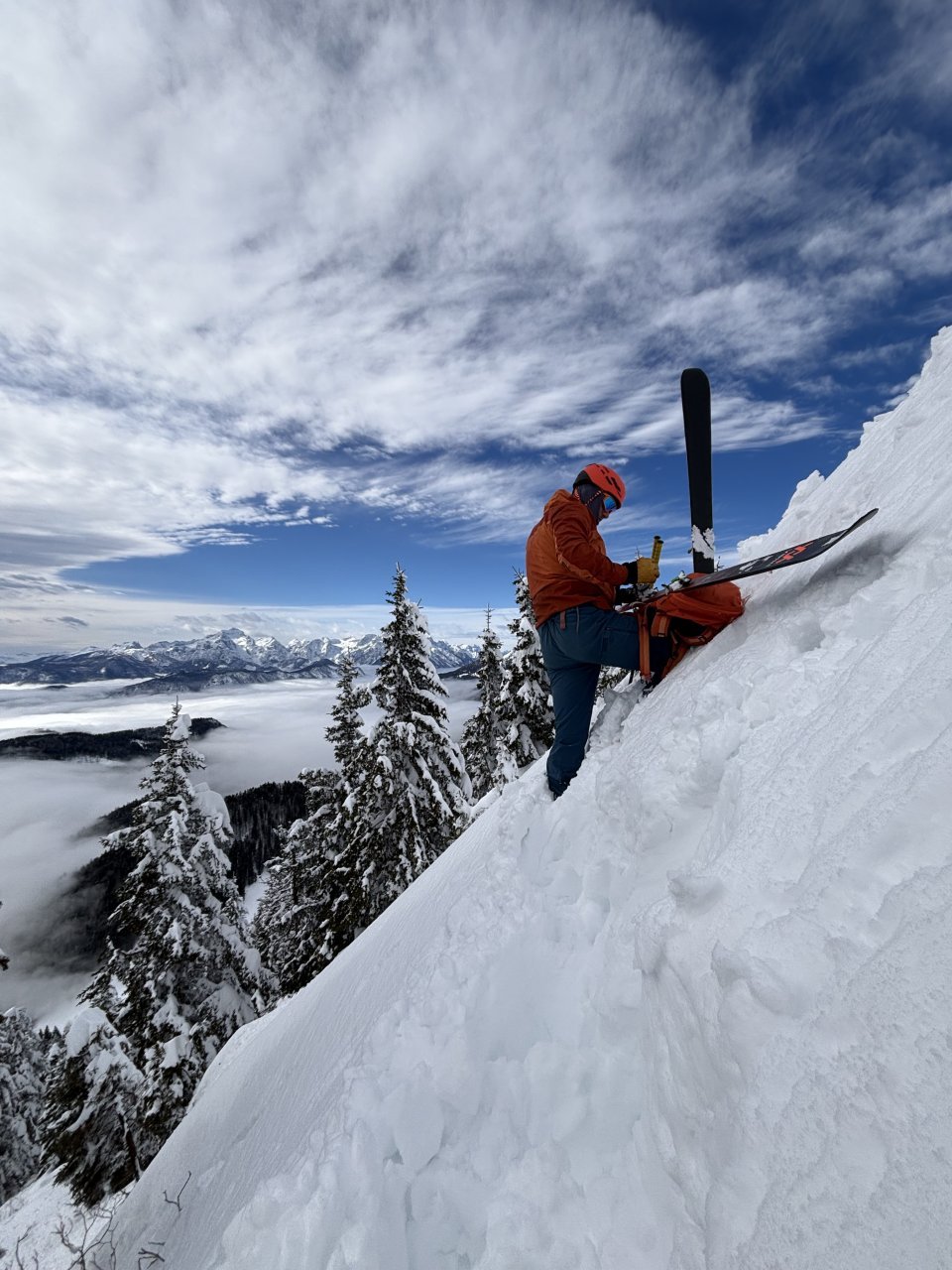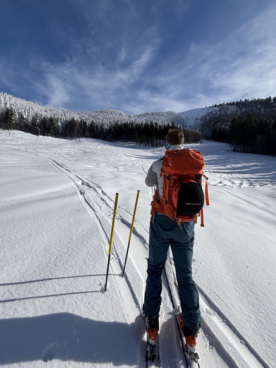 Spustiva se do koče, kože nazaj gor in naprej proti Korenščici. Iz tukaj je plan čez po grebenu do Lepega vrha, in potem še skok na Ptičji vrh. Po kratkem spustu iz Korenščice ugledava sledi, ki peljejo čez greben. Zgleda jih je nekdo isti dan potegnil pred nama. Si rečeva, da se da poštanfat. Pa še kako sva se zajeb… Itak s smučmi ni šlo nikamor, vdira se do riti. Gruntava kako je majster pred nama s smučam prišel klele čez. No zvečer sem izvedel, da je špuro potegnil Aljoša, s to razliko, da je šel v obratni smeri. Pregaziva se do odprtja, kjer se da preklopit nazaj na smuče. Potem po spihani in skorjasti snežni odeji prideva do vznožja Ptičjega vrha. Skočiva hitro na vrh, potem pa verjetno veste kaj sledi 😉 En kup vriskanja, kakor da zbudiš otroka v sebi. Po končani turi, še analiza na Pristavi.
