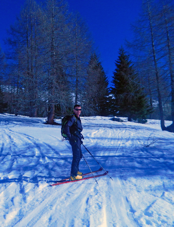 Tura sama je prav prijetna, z zložnim začetkom po gozdni cesti, potem pa počasi v breg in kmalu se znajdeš v lepi dolini med samimi smučarskimi dvatisočaki. Razgledi po okoliških hribih so res nobel – od Ankogla prek Hochkreutza, Sadnika do Vel. Kleka. Ker se nam je nadvse mudilo odsmučat tiste lepe flanke, se na vrhu nismo dosti mudili. Smuka sama je bila – razen čisto pod vrhom, ko je bilo malo akleh za plaz – prava uživancija. V glavnem je bilo ene 10 do 15 pršiča na trdi podlagi, kar je dajalo tisti pravi občutek, ko si se ozrl nazaj v prevoženo smučino.