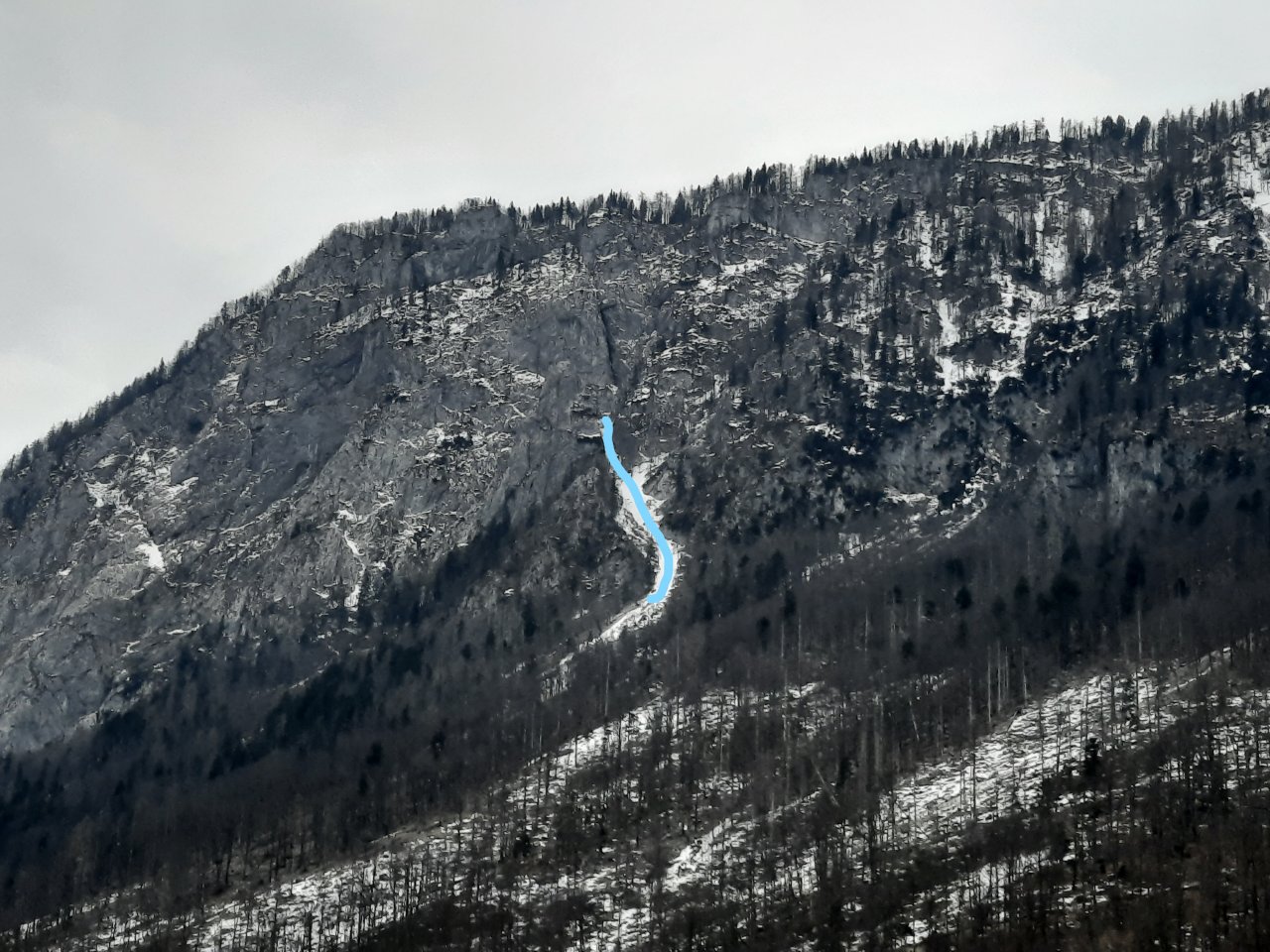 Grapa na stolp 200m, 35°, prva plezala Luka Karlin in Miha Novak v sestopu. Na nobenem spletu nisem zaznal, da bi bil po tej grapi kakšen vzpon.