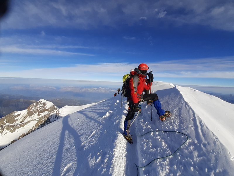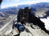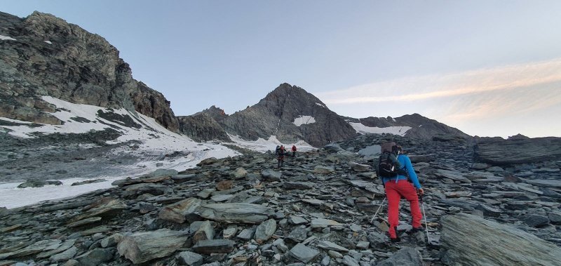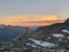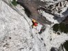 V ponedeljek sva z Urošem splezala Slovensko smer v Triglavski severni steni. Izstopila sva čez Frelihovo polico do stika s Zimmer-Jahnom in nato po snežišču na rob stene. V sami smeri je Slovenska grapa v celoti zalita. Prečenje snežišča je neizogibno pod vstopom v Frelihovo prečnico in na izstopu iz smeri. Manjše snežišče pa je bilo vidno tudi v Prevčevem izstopu. Smer je lepa, zato jo vsako leto ponovim za kondicijo.